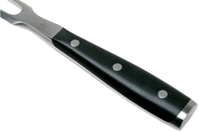 With the Wüsthof Classic Ikon meat fork 16 cm you can easily turn pieces of meat as you roast them, keep a roulade in place as you cut it and place the cut slices on the plates of your guests.
